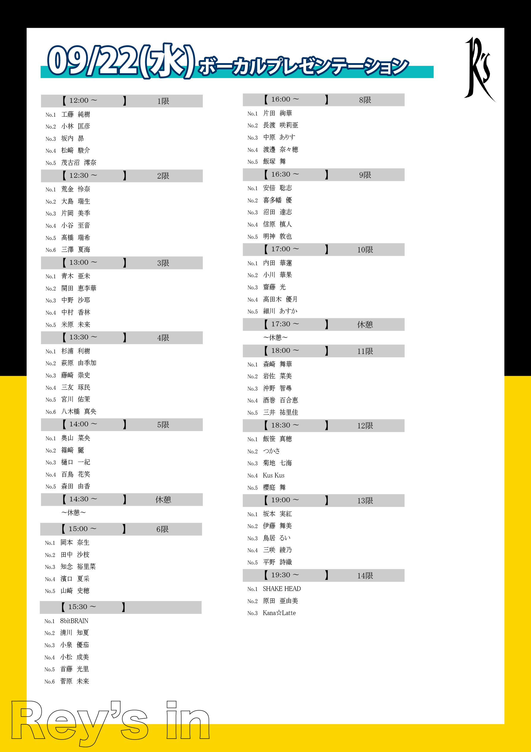 09/22(水)23(木)ボーカルプレゼンテーション タイムテーブル