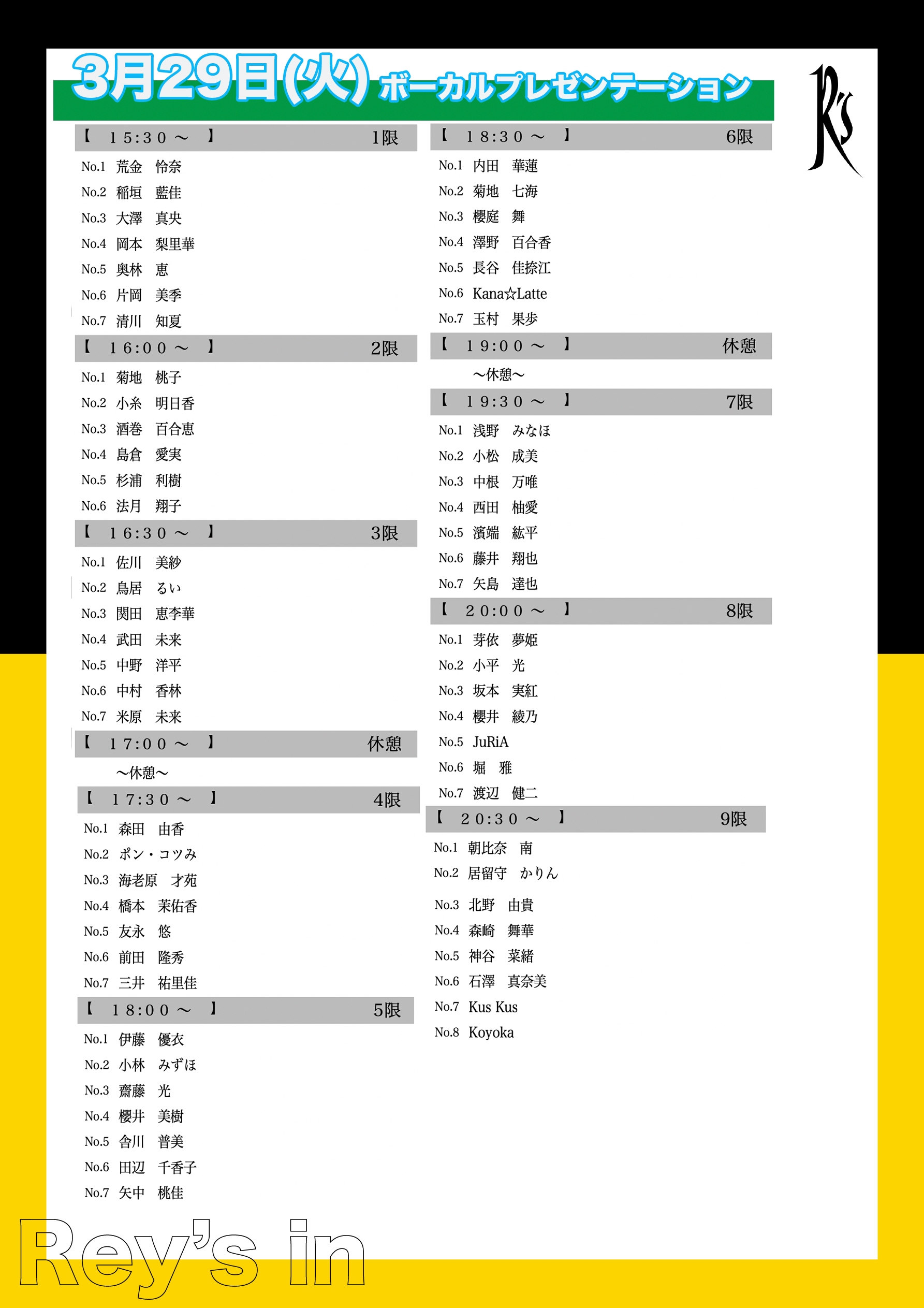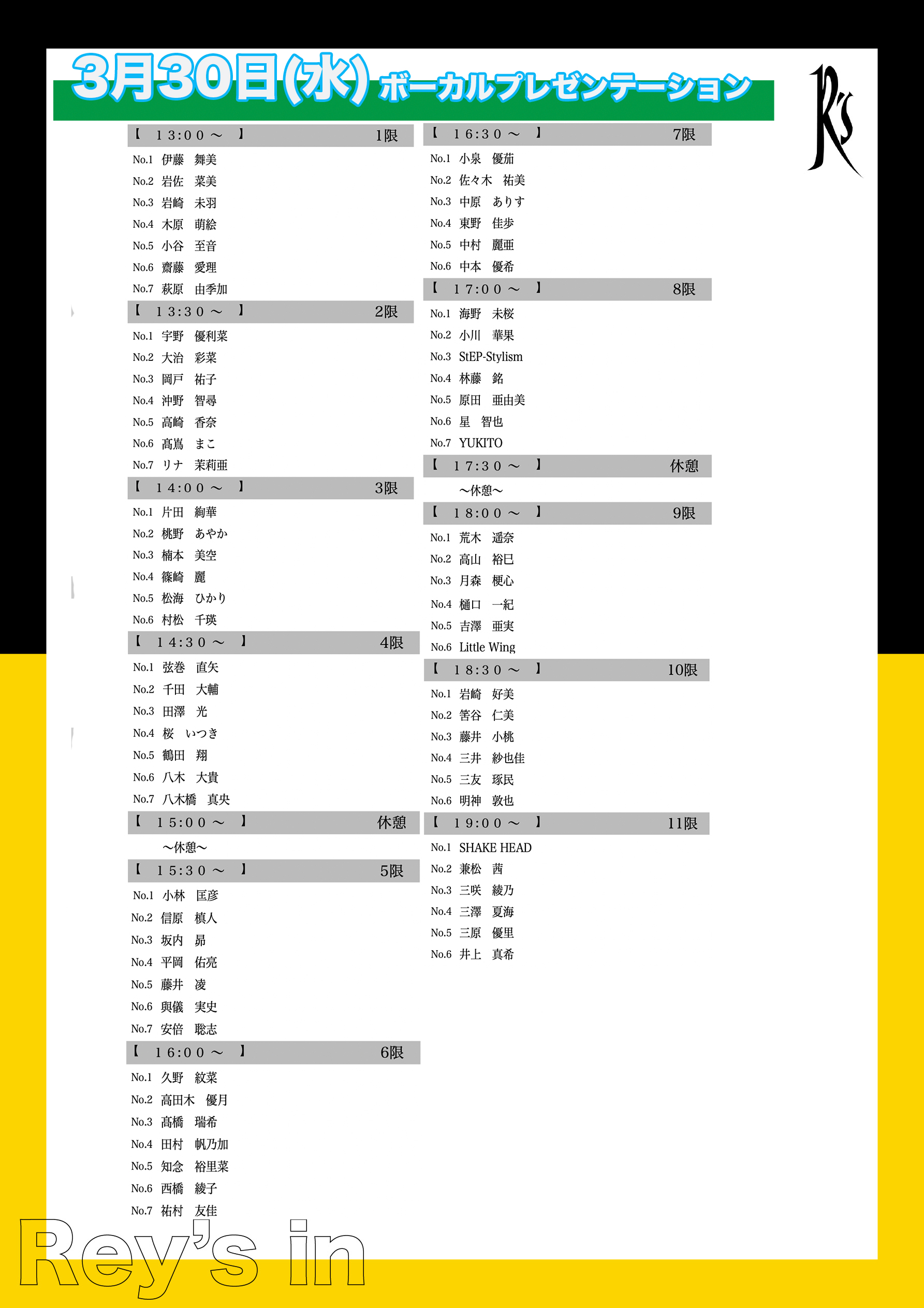 ○入り時間は各回出演の30分前になります。30分前には会場内に待機してください。