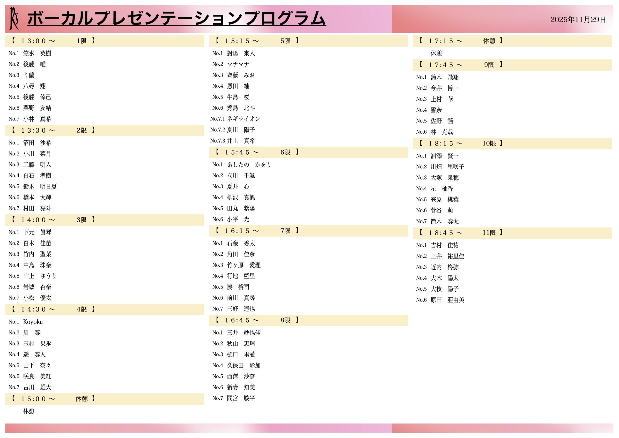 各自、自身の出演時間をご確認下さい。