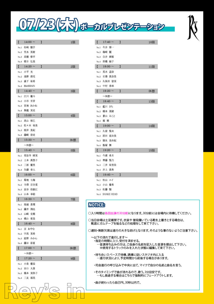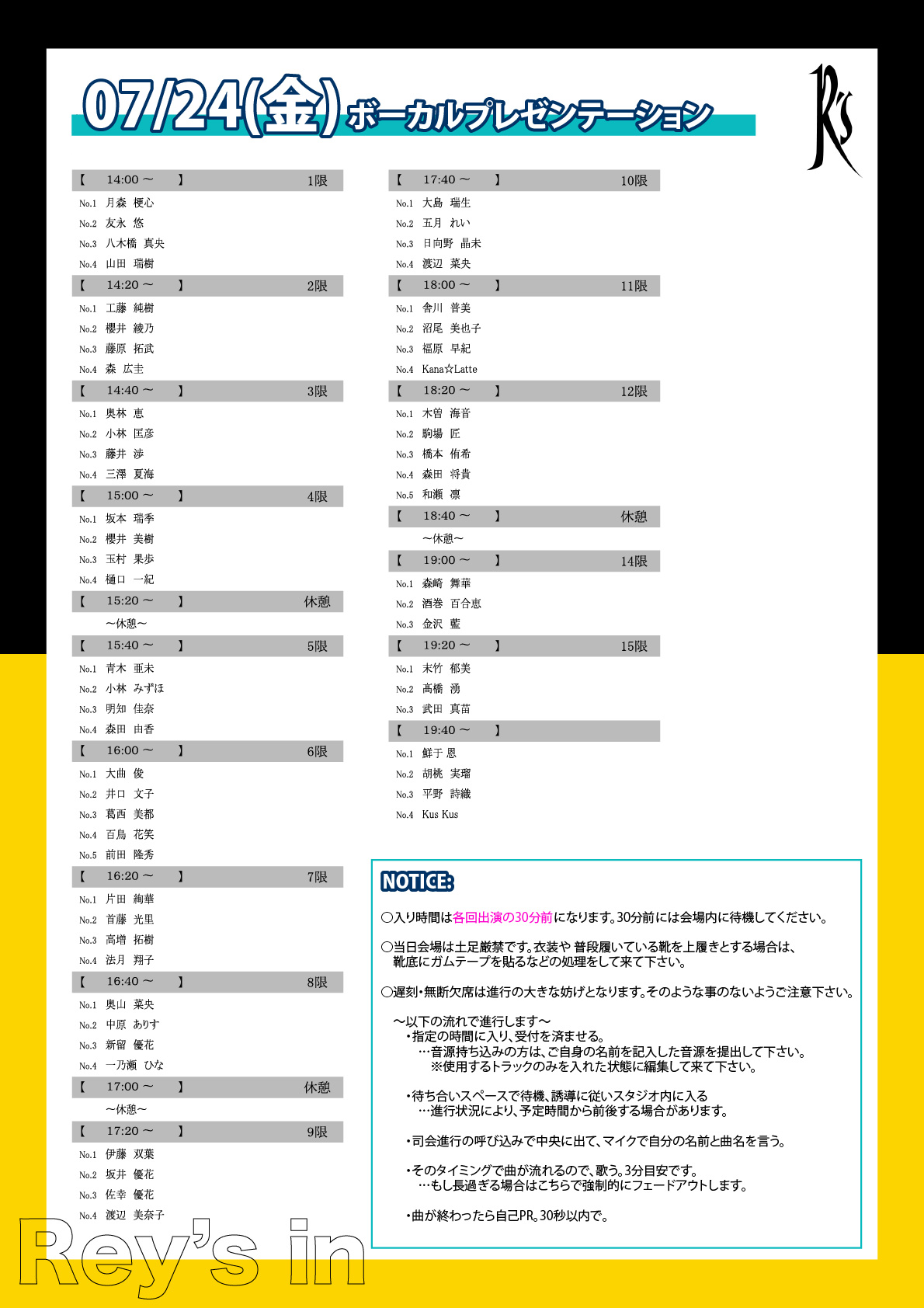○入り時間は各回出演の30分前になります。30分前には会場内に待機してください。